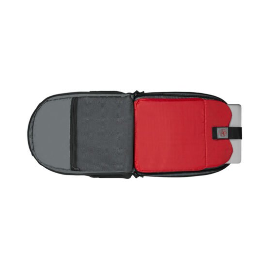 - El compartimiento acolchonado con triple protección apto para punto de control protege una laptop de hasta 16”