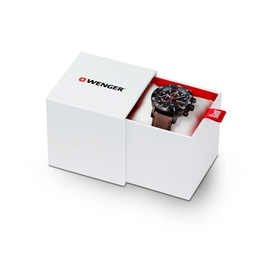 Enviar por Email a un amigoRugoso y deportivo, el nuevo reloj Roadster lo hará sentir listo para la acción. Podrá elegir entre varios estilos dinámicos, ya sea en su versión de 3 manecillas o cronógrafo, caja de acero inoxidable o revestimiento PVD negro, equipado con gran variedad de brazaletes y correas de piel. Manecillas, números y marcadores con tecnología Superluminova que brilla en la oscuridad. La colección Roadster de Wenger cuenta con Ø45mm en cajas con taquímetro o con bisel para buceadores. Resistencia al agua de 100m. Todos los relojes Wenger están cubiertos por 3 años de Garantía Internacional.
