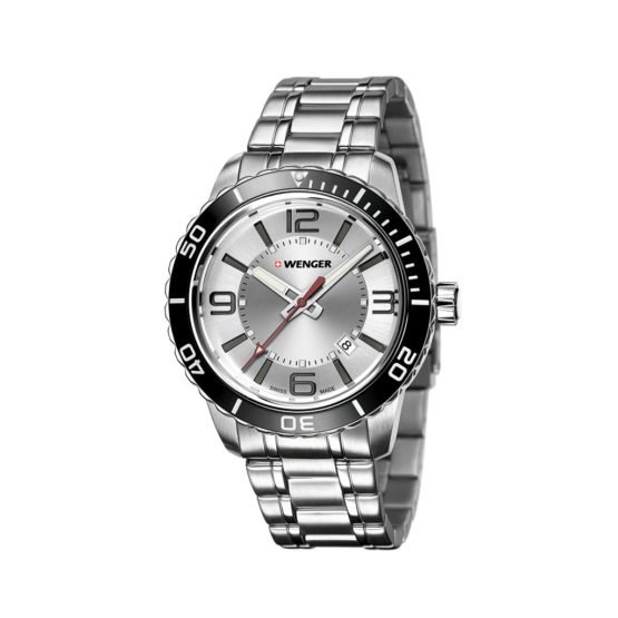 Enviar por Email a un amigoRugoso y deportivo, el nuevo reloj Roadster lo hará sentir listo para la acción. Podrá elegir entre varios estilos dinámicos, ya sea en su versión de 3 manecillas o cronógrafo, caja de acero inoxidable o revestimiento PVD negro, equipado con gran variedad de brazaletes y correas de piel. Manecillas, números y marcadores con tecnología Superluminova que brilla en la oscuridad. La colección Roadster de Wenger cuenta con Ø45mm en cajas con taquímetro o con bisel para buceadores. Resistencia al agua de 100m. Todos los relojes Wenger están cubiertos por 3 años de Garantía Internacional.
