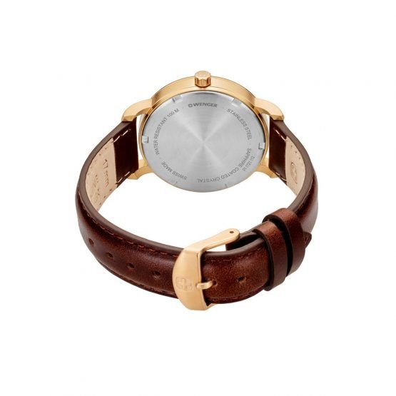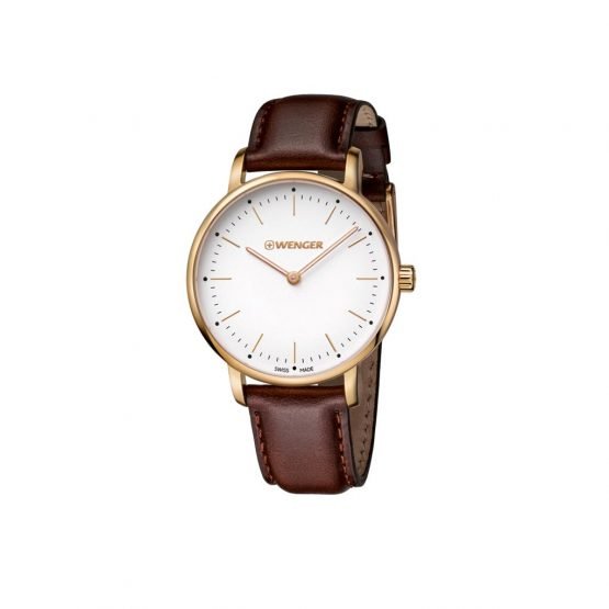 La línea Urban Classic se declina en cronógrafos de Ø44mm y Ø43mm, así como 42, 41 y 34mm en versiones de 3 manecillas. Resistencia al agua de 100m. Todos los relojes Wenger están cubiertos por 3 años de Garantía Internacional.
