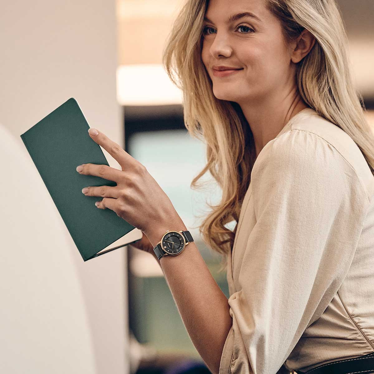 Enviar por Email a un amigoSiente la magistral combinación de elegancia y confianza con la colección Urban Donnissima: relojes suizos diseñados para mujeres que celebran su independencia y vitalidad. Con sus clásicos números romanos y brillantes cristales Swarovski® que destellan con cada movimiento, estos relojes emanan elegancia femenina para hacerte sentir naturalmente radiante cada vez que los usas. Elaborados con excepcional calidad y ojo para el detalle, los elementos sobresalientes combinan complejidad y fineza técnica. Prácticos y elegantes, estos relojes son perfectos para el uso diario y espectaculares para ocasiones especiales. Ya sea que vayas a una reunión de negocios, a un brunch o una salida nocturna, los Urban Donnissima se integran perfectamente a tu estilo de vida.