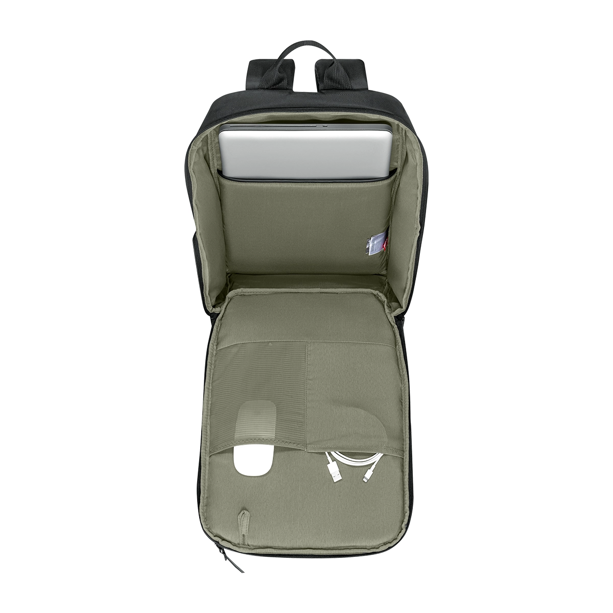 - Compartimento acolchonado para laptops de hasta 15.6 pulgadas/40 cm, con dos bolsillos abiertos para accesorios